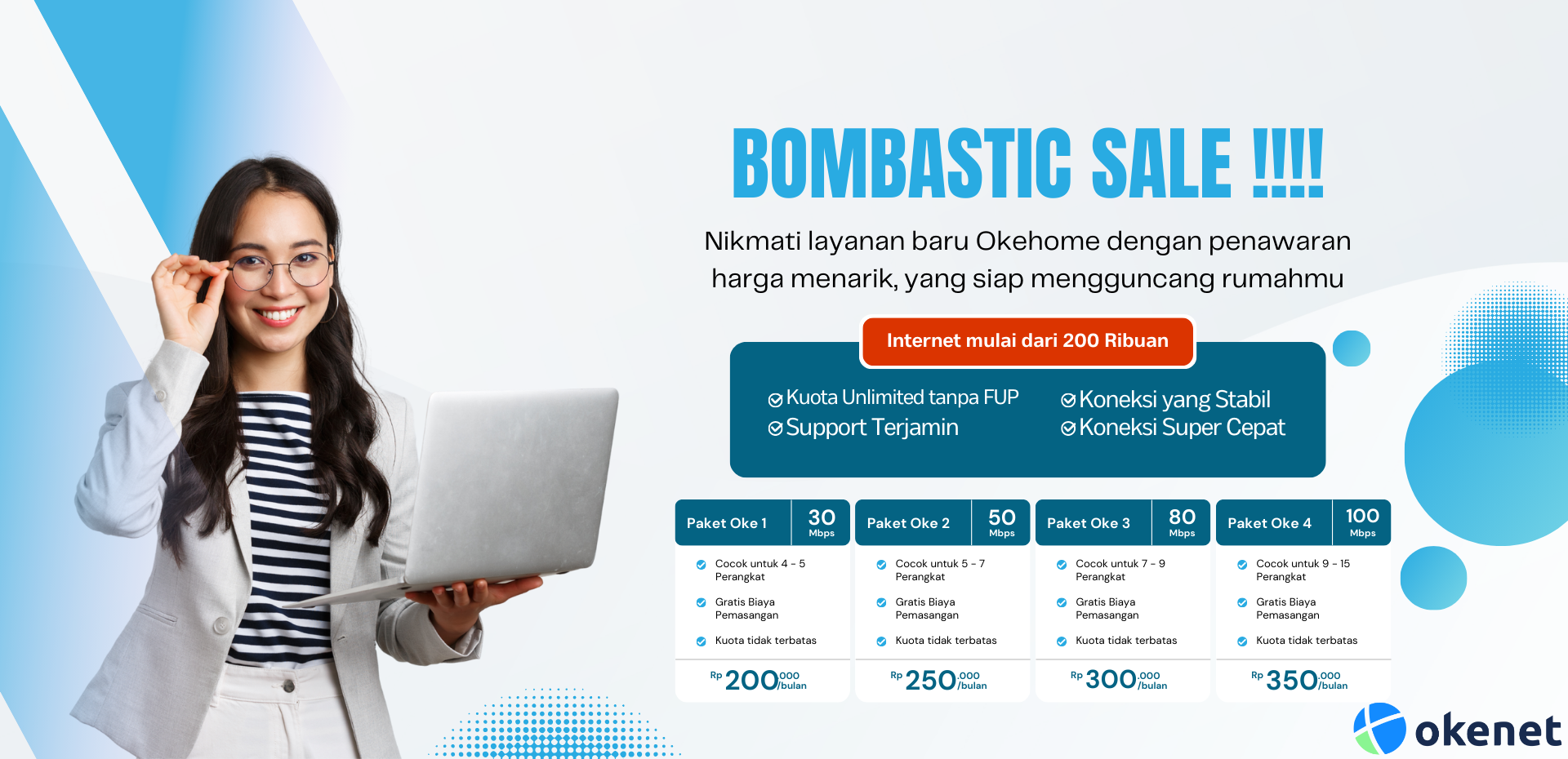 Oke Home merupakan solusi internet rumah yang andal dengan kecepatan tinggi, dirancang khusus untuk mendukung kebutuhan harian keluarga seperti belajar online, streaming video, gaming, dan bekerja dari rumah. Dengan jaringan yang stabil dan layanan pelanggan yang responsif, kami memastikan pengalaman digital di rumah Anda berjalan lancar, nyaman, dan tanpa hambatan sepanjang hari. Nikmati koneksi yang aman, cepat, dan hemat untuk seluruh anggota keluarga.
